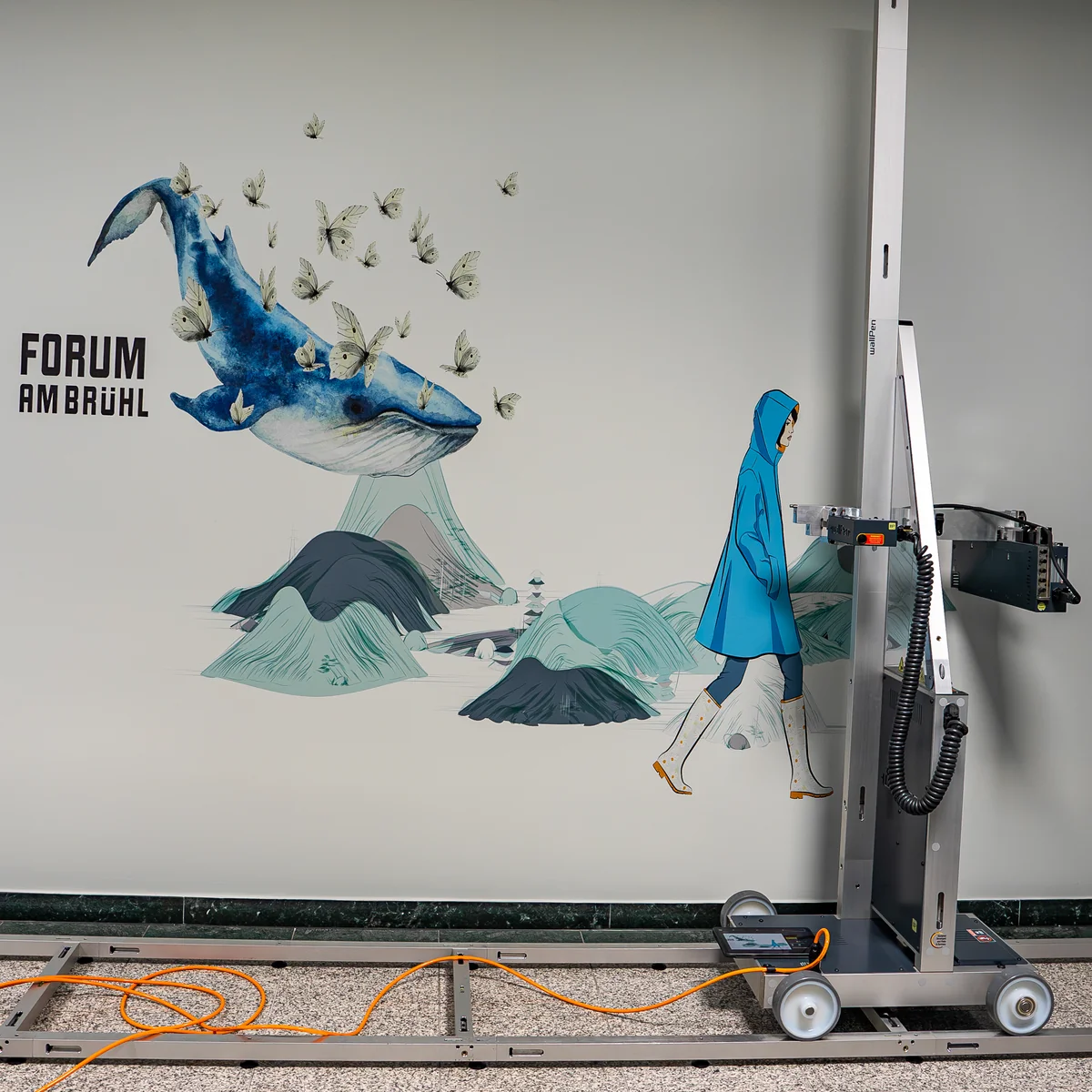 Der Wanddruck ist ein direkter UV-Druck auf nahezu jeder Wandfläche. Das vertikale Drucksystem bringt das Motiv präzise, nahtlos und dauerhaft auf die Wand auf – schnell, sauber und sehr scharf.